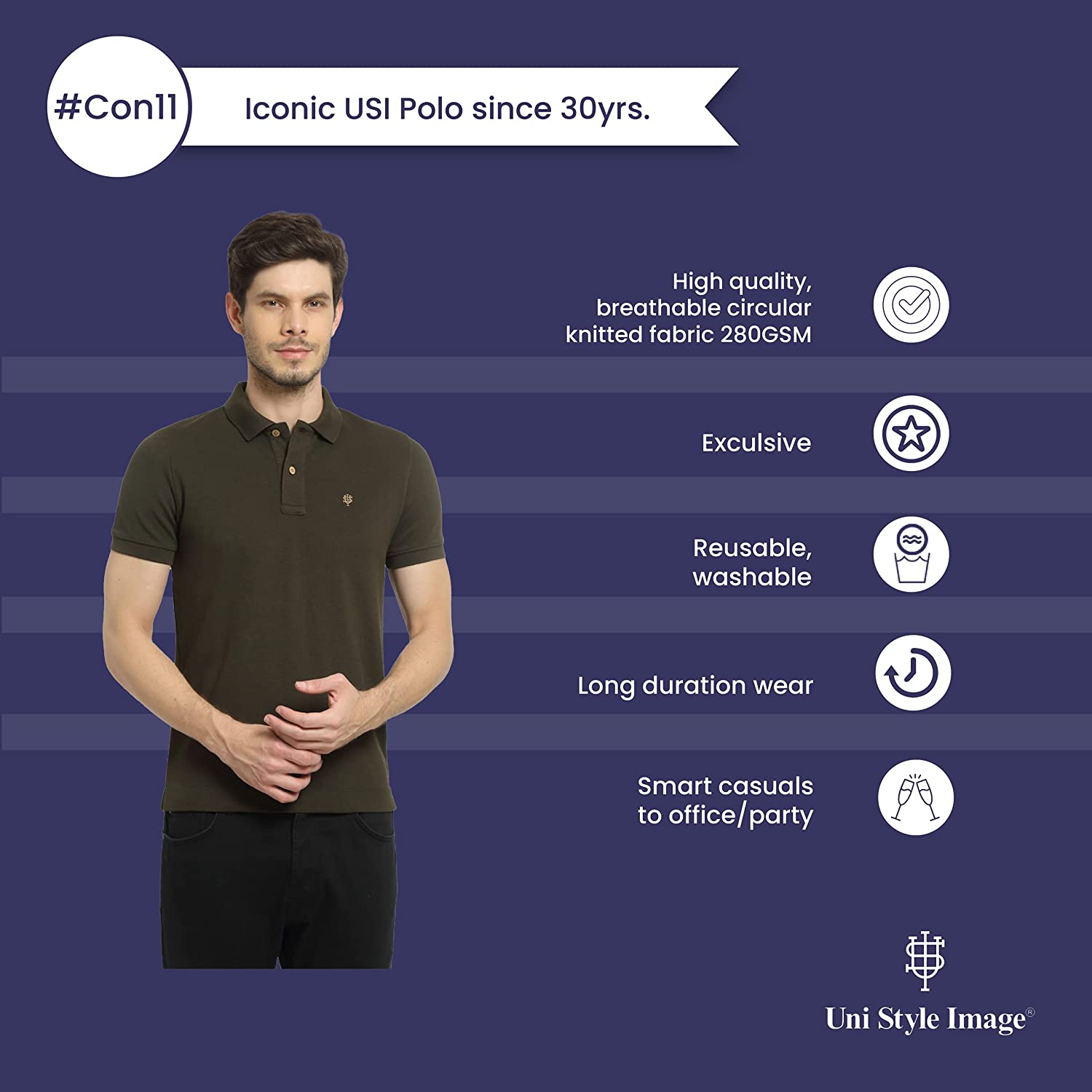 • USI Con 11 Polo enables you to wear it for long periods of time it won't loose its freshness