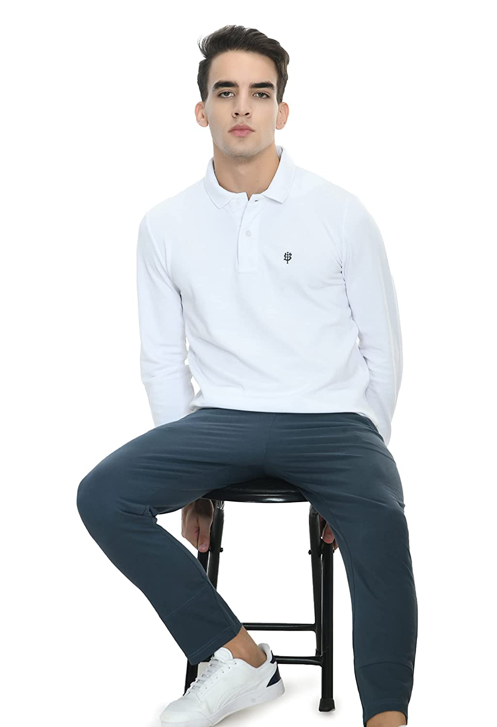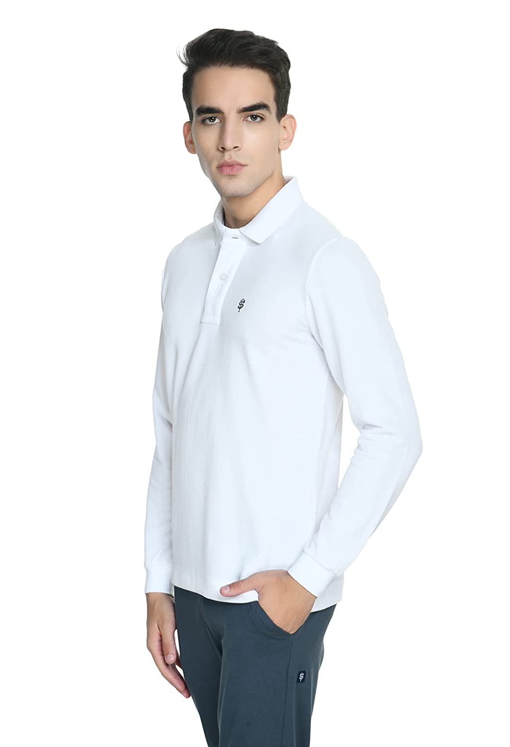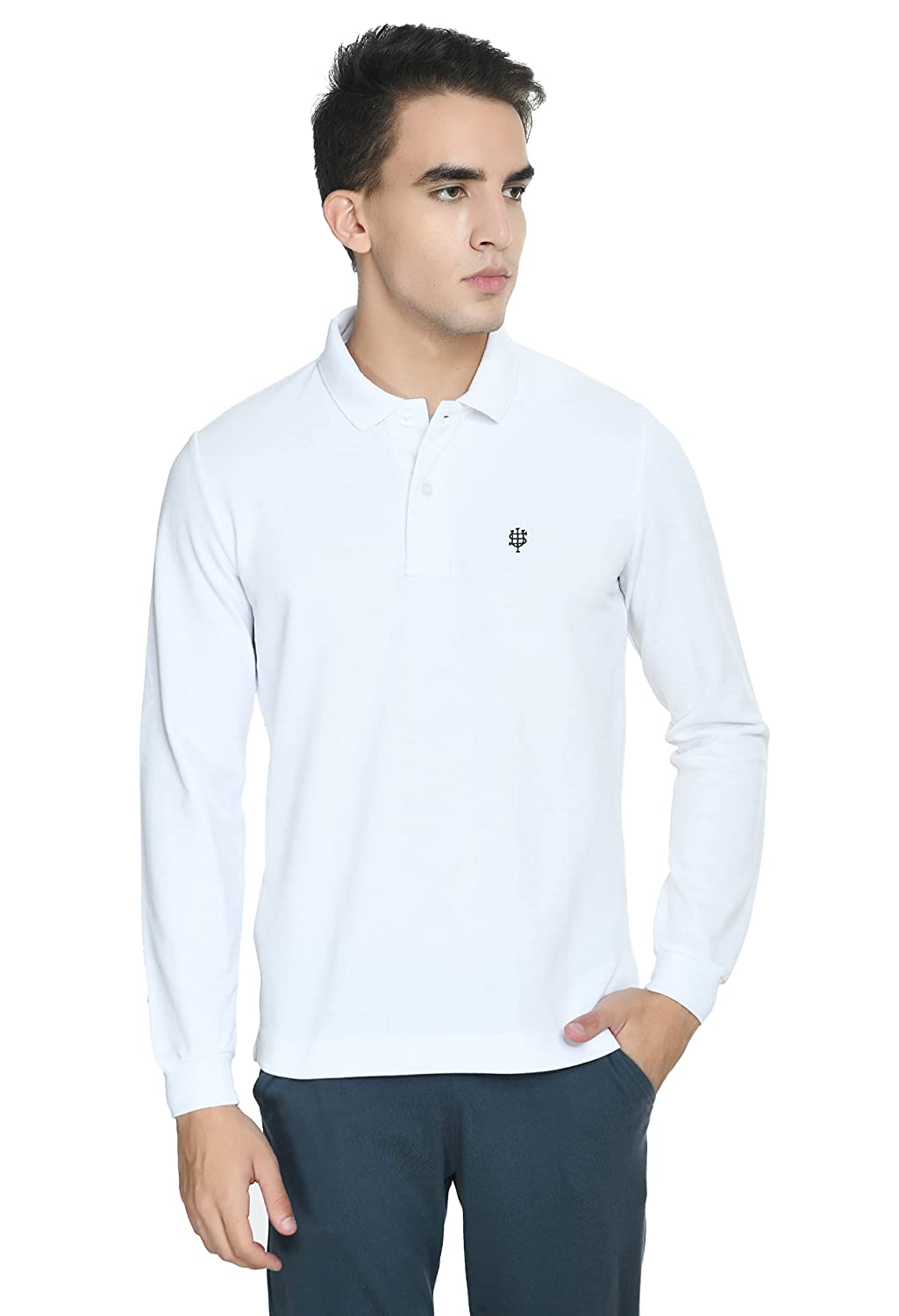 USI Uni Style Image Mens Smart Fit Con 11 Polo T-Shirt Full Sleeves Color: White